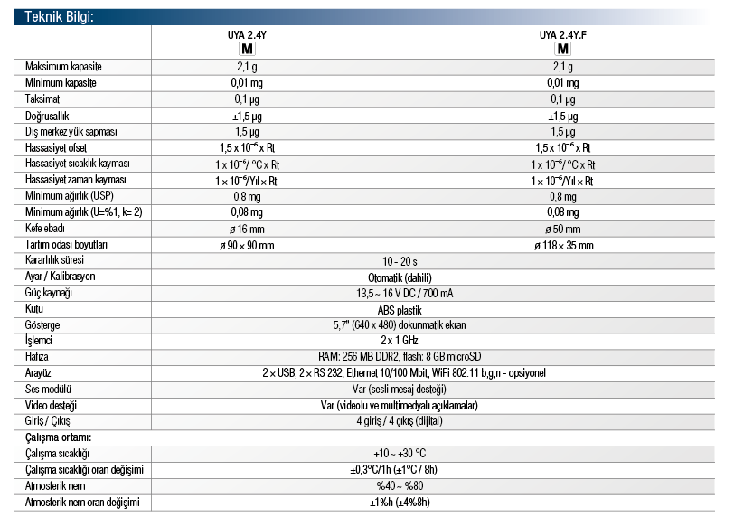 UYA 4Y serisi ultra mikro terazi tartım cihazı, özellikle tartımın mükemmel doğruluk ve yüksek hız gerektirdiği zamanlarda kullanım kolaylığı sağlar. Entegre dahili otomatik kalibrasyon/ayar sistemi, mükemmel doğruluk ve hassasiyette, güvenilir ölçüm sağlar. Cihaz, birbirinden ayrılmış gösterge ve hassas mekanik ölçüm sistemi olarak iki ana bileşenden oluşmaktadır. Bu tasarım, mekanik sistem bileşeni üzerindeki, cihazdaki elektronik sistemin ısınma etkisini yok edeceği gibi, operasyon sırasında kullanıcılardan kaynaklanan şok ve titreşim etkilerini de engeller. Mikro terazinin tüm elemanları çelik ve cam malzemeden yapılmıştır. Bu sayede, tartım prosesi üzerinde elektrostatik etki yok edilmiştir.